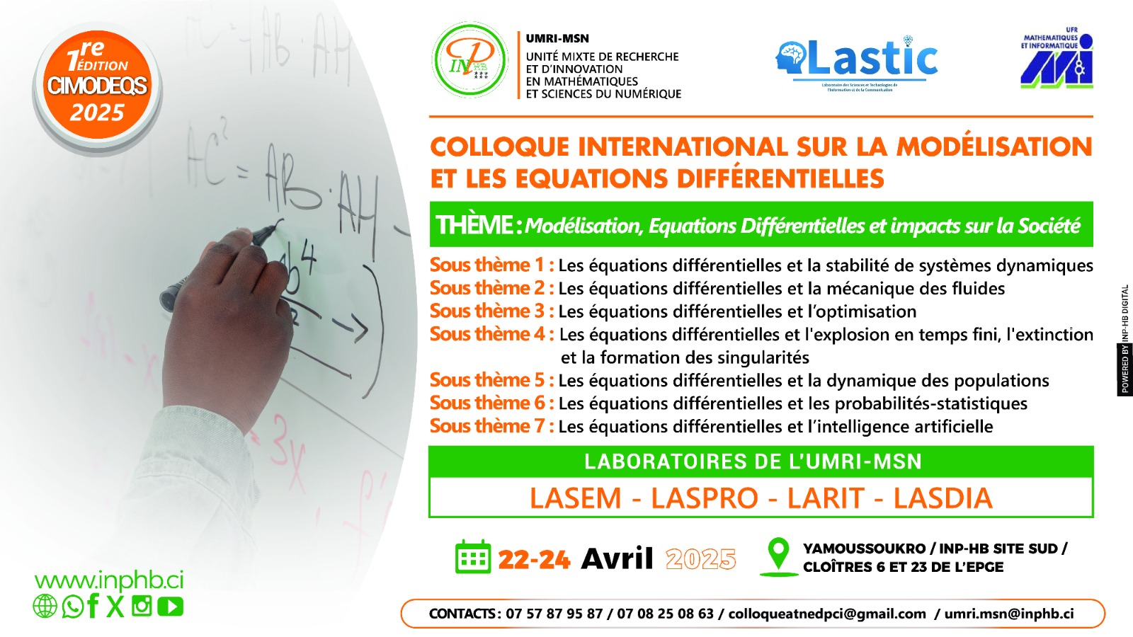 Le Colloque International sur la Modélisation et les Équations Différentielles (CIMODEQS) est un événement scientifique majeur organisé par l’INP-HB.